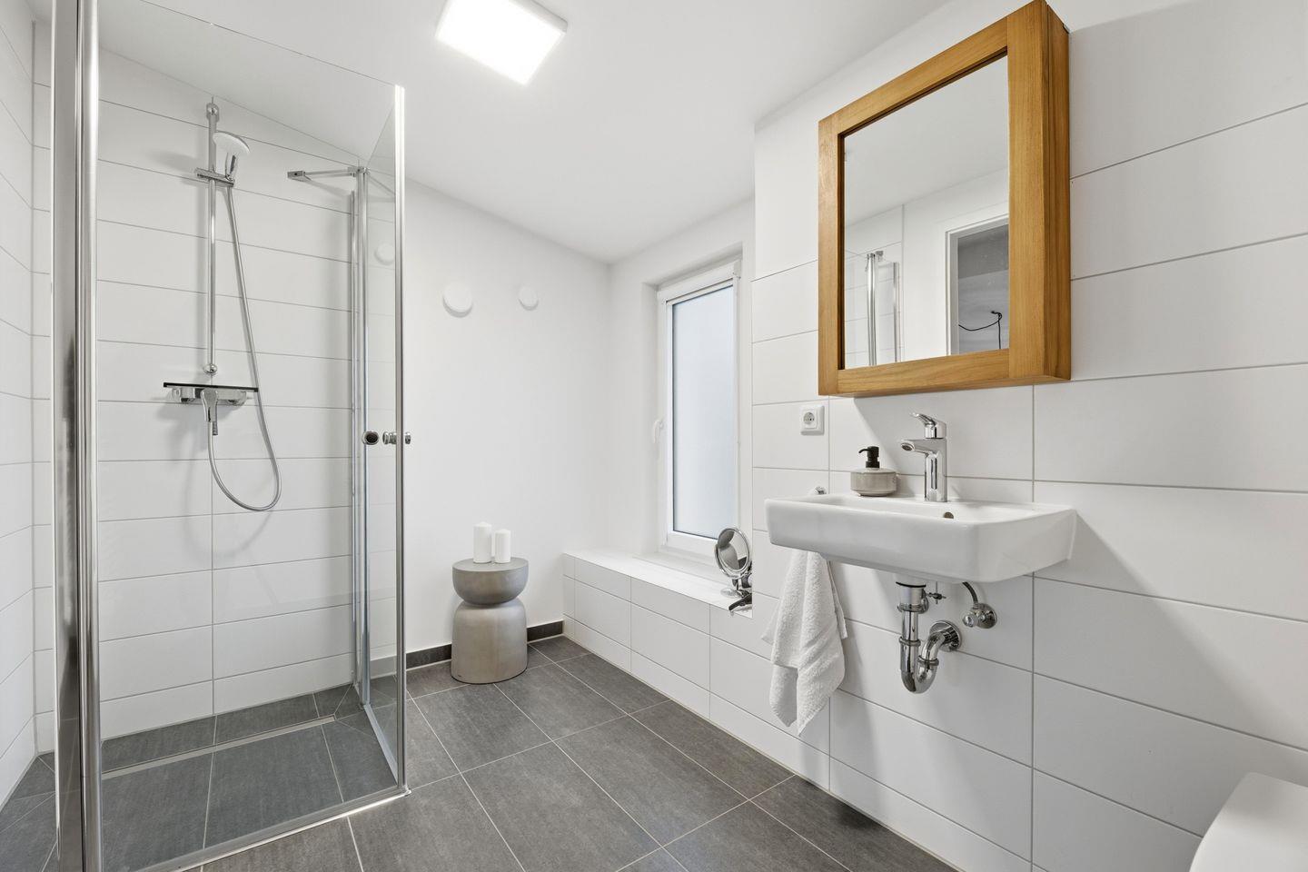 - Ein Badezimmer mit geräumigen Duschen und hochwertigen Armaturen