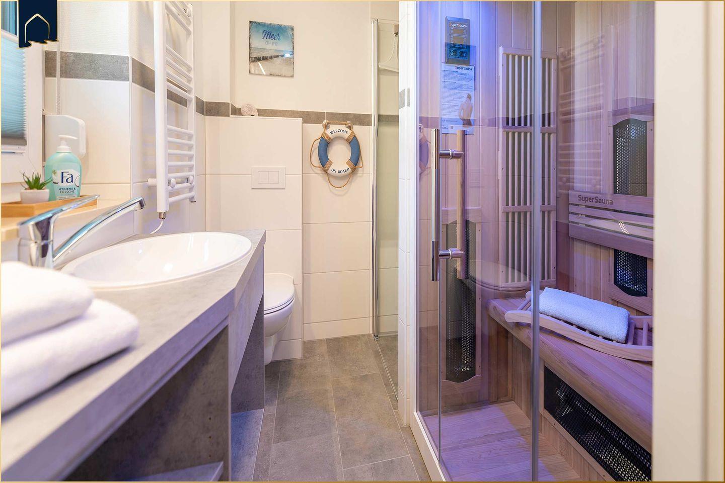 Das Ferienhaus verfügt über eine schöne Terrasse mit Gartenmöbeln, Markise und Sonnenliegen – ideal für gemütliche Stunden an der frischen Luft. Im gepflegten Garten können Kinder spielen, während die Erwachsenen den Tag bei einem Glas Wein am Grill ausklingen lassen. Zwei private Parkplätze, eine eBike-Ladestation und ein Fahrradabstellraum machen die Unterkunft besonders praktisch. Beliebte Ausflugsziele wie die Ostsee-Strände, Seen und Golfplätze liegen nur wenige Kilometer entfernt. Ob Aktivurlaub oder pure Erholung – dieses Ferienhaus erfüllt alle Wünsche.