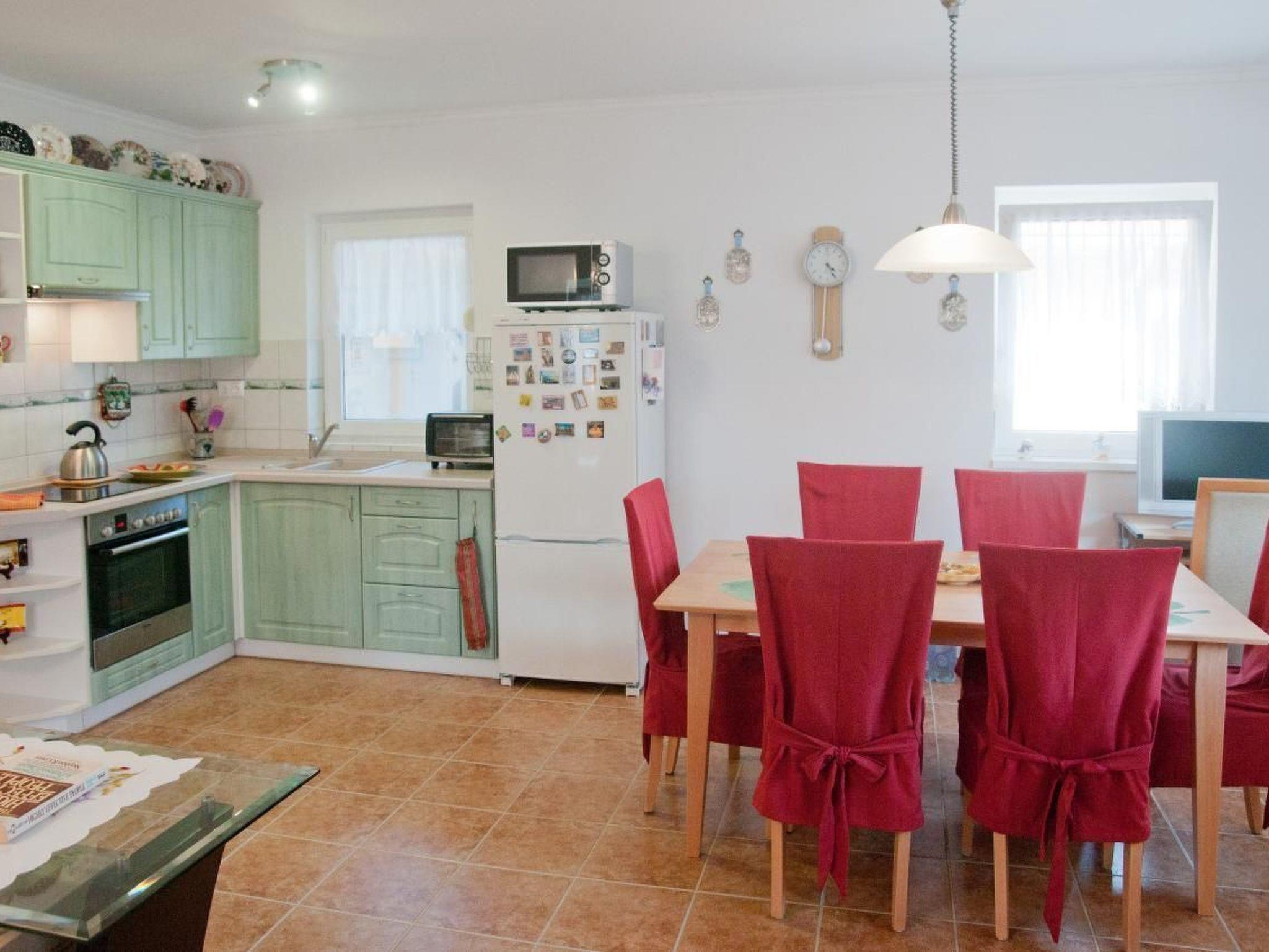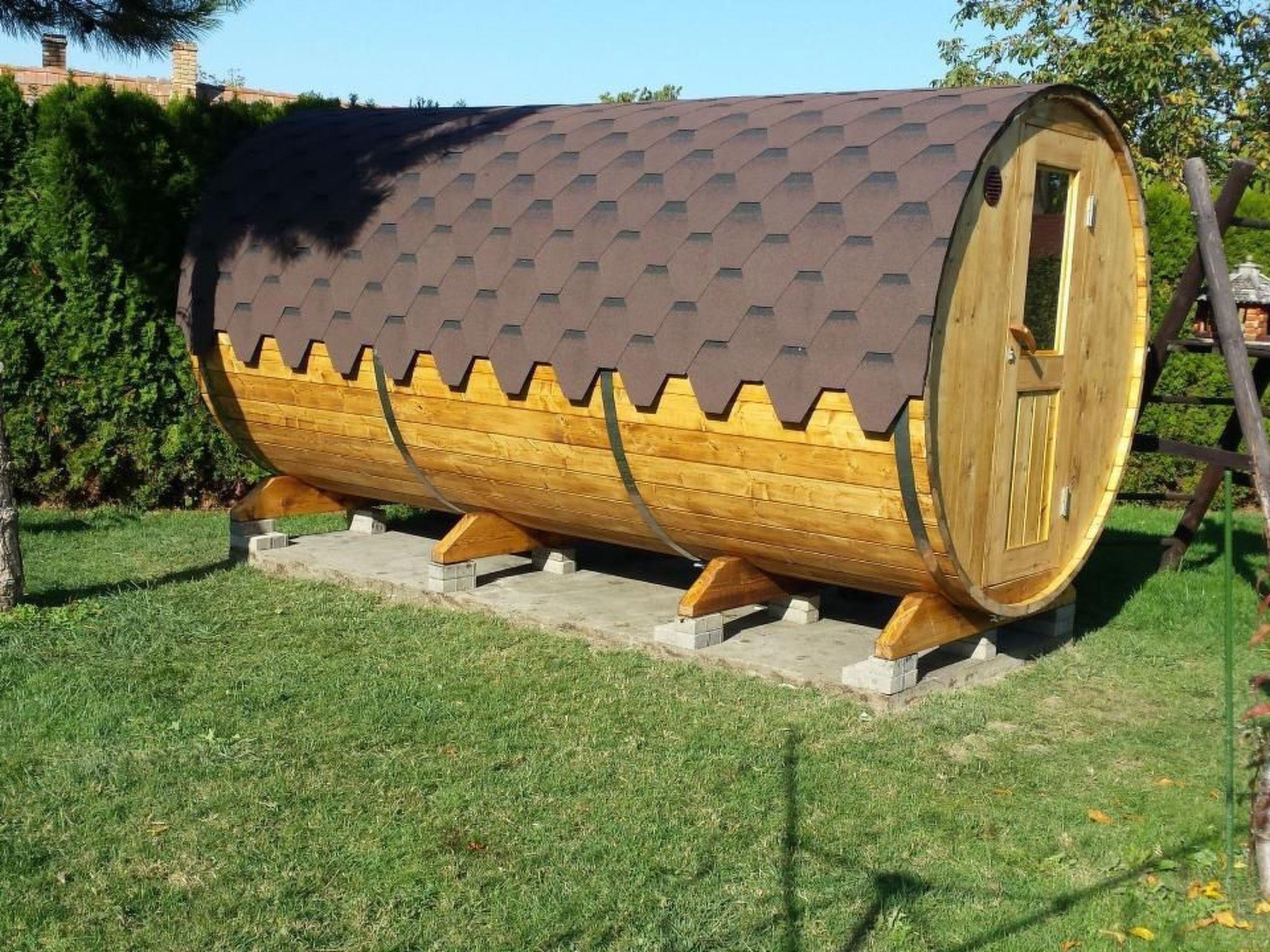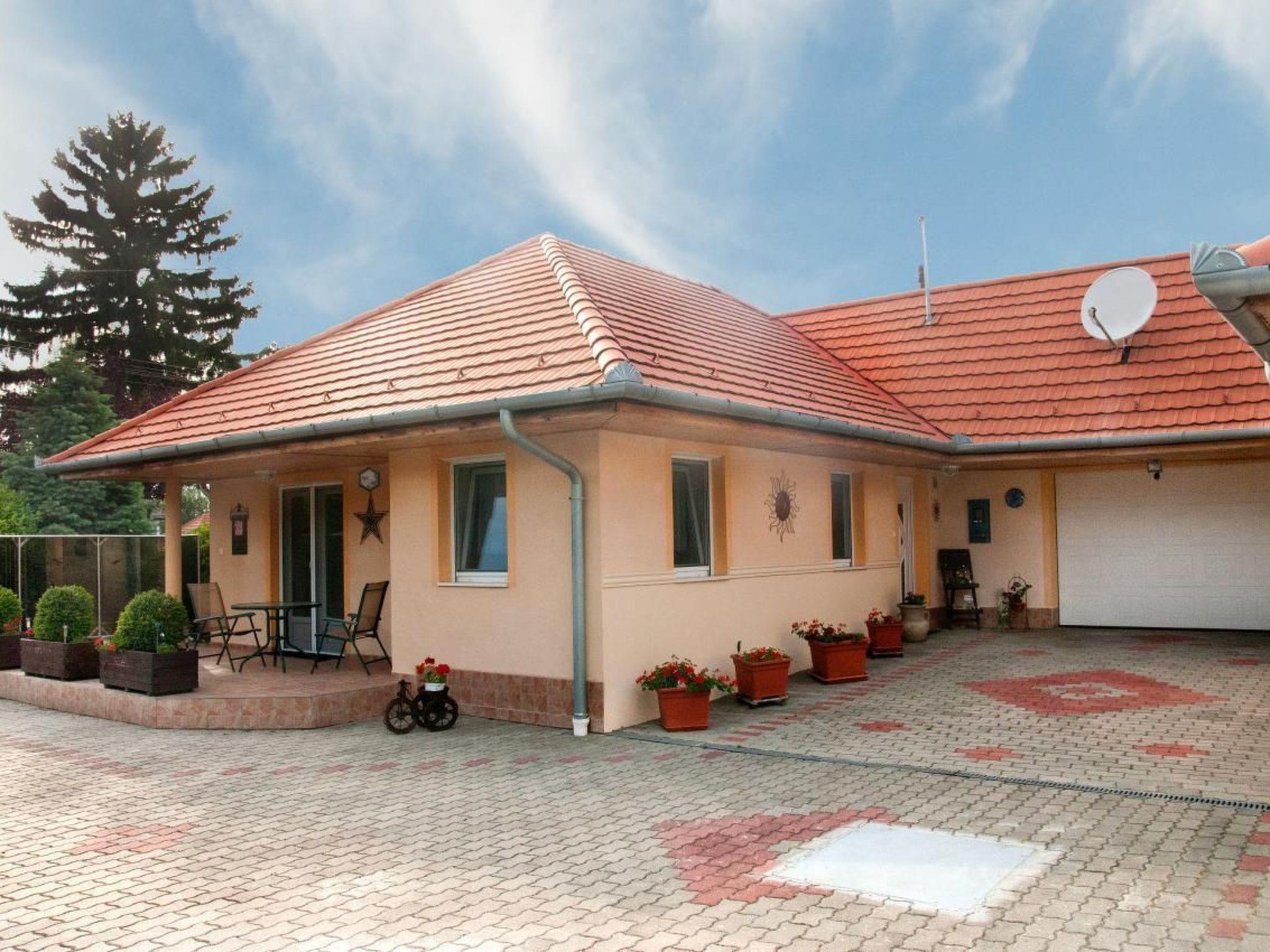 Are you looking for a high-quality holiday home for up to 6 people on the south side of Lake Balaton in Balatonbereny? Our holiday home "Steffi K" is the right place for you. Please note that normal beds are available for four people. A possible fifth and sixth person sleeps on a sofa bed in the living room, another person sleeps on a mobile travel cot in the living room. A cot for a small child is also available. The house is equipped with W-LAN. Please note that we have to charge a visitor's tax per person and day from the age of 18. We offer you a house without the stress of the surroundings and yet within a short distance of all the things you need for a good holiday, such as restaurants, shops for daily needs, post office, doctor, train, bicycle rental. Of course, there are also some bicycles and a children's trailer in your holiday home, which can be used depending on availability. You can also use a gas barbecue. For colder days, we have a wonderful barrel sauna in the garden for up to 8 people, which is very popular on cold days. Our manager manages the keys for this and will also provide you with the necessary sauna towels for a washing fee. Please do NOT make any infusions in the sauna. You only pay for electricity if the total electricity consumption during your holiday exceeds 200kwh. After that one kwh costs 20ct.On our property you will find a double swing for your children and also a trampoline. A table tennis table completes the offer. You will find a lido 1000 metres away and for those who like nude bathing there is a very nice lido 2 km away. The cycle path around Lake Balaton also leads through our village. Keszthely, the largest town on Lake Balaton, is 15 kilometres away. It offers a lot of sights, a very nice lido, a really beautiful boulevard and of course all the necessary shopping facilities you can think of for your holiday. There is also a hospital there. And of course a lot of restaurants. The world-famous Heviz thermal spa is about 17 kilometres from Balatonbereny. In 20km you will find another extremely beautiful thermal bath in Zalakaros and for friends of unspoilt nature the Kissbalaton area begins in 15km. You will find further suggestions in an information folder in the house on arrival. Your contact person, who will give you the keys, speaks German and will also answer any questions you may have. should you ever want to come to us with more than 6 people, there is the possibility of renting another, also very high quality holiday home for up to 8 people in the immediate vicinity of your house. Please note that according to EU law you must also carry a child's identity card for children of all ages. This may be required at borders and must also be available for registration with the tourist authorities. We wish you a relaxing and stress-free holiday with us. If you like it, please visit us again. We would be pleased.Short descriptionOther : Non-smoking houseShort description 1Number of kitchens : 1Living room 1Other living room equipment : can be equipped with additional guest bed for fifth personBedroom 1Other bedroom equipment : usual wardrobesBedroom 2Other bedroom equipment : usual wardrobesSurroundingsBicycle rentalSports facilities in the area : Bicycle toursSurrounding area 1Excursion possibilities : Bicycle circuit around Lake Balaton, boat trips on Lake Balaton, thermal baths Heviz and Zalakaros, Budapest, many museums in Keszthely, African Museum on the north side of the lake, all places around Lake Balaton as well as Budapest can be reached by trainLocation description : Balatonbereny is a holiday resort on the south side of Lake Balaton with a village character.Our house is located completely outside the noise of the Balaton railway in a very quiet side street, an oasis of peace for stressful people, in Balatonbereny you will find all necessary utilities within a short distance and the connection to other places is very good.garden and outdoor facilitiesRecreational facilities at the property : outdoor pool for shared use, swimming poolGarden equipment : garden furniture available, barbecue, gazebo, playground equipment