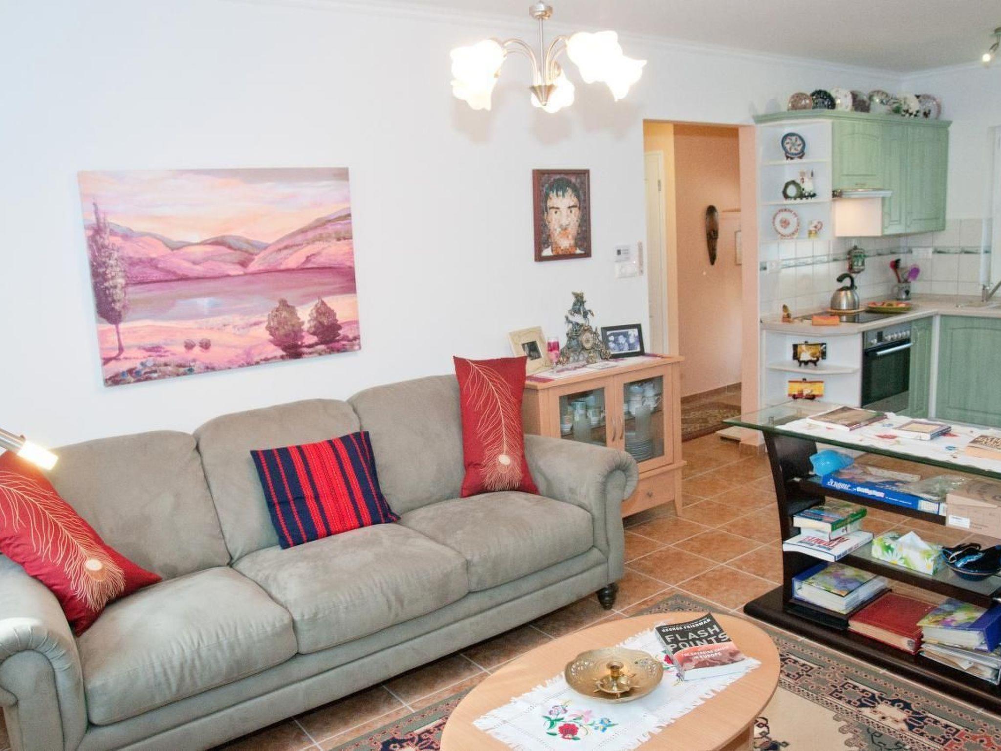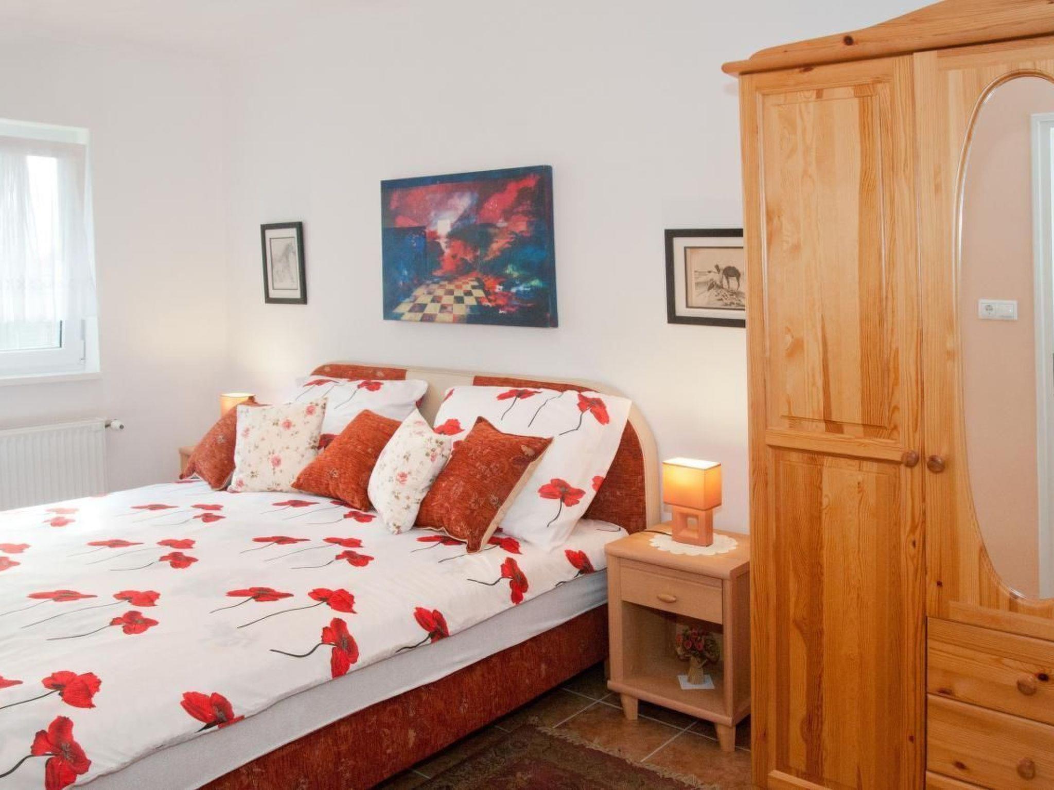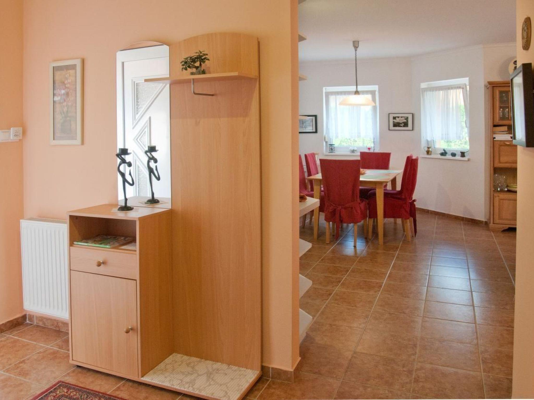 Are you looking for a high-quality holiday home for up to 6 people on the south side of Lake Balaton in Balatonbereny? Our holiday home "Steffi K" is the right place for you. Please note that normal beds are available for four people. A possible fifth and sixth person sleeps on a sofa bed in the living room, another person sleeps on a mobile travel cot in the living room. A cot for a small child is also available. The house is equipped with W-LAN. Please note that we have to charge a visitor's tax per person and day from the age of 18. We offer you a house without the stress of the surroundings and yet within a short distance of all the things you need for a good holiday, such as restaurants, shops for daily needs, post office, doctor, train, bicycle rental. Of course, there are also some bicycles and a children's trailer in your holiday home, which can be used depending on availability. You can also use a gas barbecue. For colder days, we have a wonderful barrel sauna in the garden for up to 8 people, which is very popular on cold days. Our manager manages the keys for this and will also provide you with the necessary sauna towels for a washing fee. Please do NOT make any infusions in the sauna. You only pay for electricity if the total electricity consumption during your holiday exceeds 200kwh. After that one kwh costs 20ct.On our property you will find a double swing for your children and also a trampoline. A table tennis table completes the offer. You will find a lido 1000 metres away and for those who like nude bathing there is a very nice lido 2 km away. The cycle path around Lake Balaton also leads through our village. Keszthely, the largest town on Lake Balaton, is 15 kilometres away. It offers a lot of sights, a very nice lido, a really beautiful boulevard and of course all the necessary shopping facilities you can think of for your holiday. There is also a hospital there. And of course a lot of restaurants. The world-famous Heviz thermal spa is about 17 kilometres from Balatonbereny. In 20km you will find another extremely beautiful thermal bath in Zalakaros and for friends of unspoilt nature the Kissbalaton area begins in 15km. You will find further suggestions in an information folder in the house on arrival. Your contact person, who will give you the keys, speaks German and will also answer any questions you may have. should you ever want to come to us with more than 6 people, there is the possibility of renting another, also very high quality holiday home for up to 8 people in the immediate vicinity of your house. Please note that according to EU law you must also carry a child's identity card for children of all ages. This may be required at borders and must also be available for registration with the tourist authorities. We wish you a relaxing and stress-free holiday with us. If you like it, please visit us again. We would be pleased.Short descriptionOther : Non-smoking houseShort description 1Number of kitchens : 1Living room 1Other living room equipment : can be equipped with additional guest bed for fifth personBedroom 1Other bedroom equipment : usual wardrobesBedroom 2Other bedroom equipment : usual wardrobesSurroundingsBicycle rentalSports facilities in the area : Bicycle toursSurrounding area 1Excursion possibilities : Bicycle circuit around Lake Balaton, boat trips on Lake Balaton, thermal baths Heviz and Zalakaros, Budapest, many museums in Keszthely, African Museum on the north side of the lake, all places around Lake Balaton as well as Budapest can be reached by trainLocation description : Balatonbereny is a holiday resort on the south side of Lake Balaton with a village character.Our house is located completely outside the noise of the Balaton railway in a very quiet side street, an oasis of peace for stressful people, in Balatonbereny you will find all necessary utilities within a short distance and the connection to other places is very good.garden and outdoor facilitiesRecreational facilities at the property : outdoor pool for shared use, swimming poolGarden equipment : garden furniture available, barbecue, gazebo, playground equipment