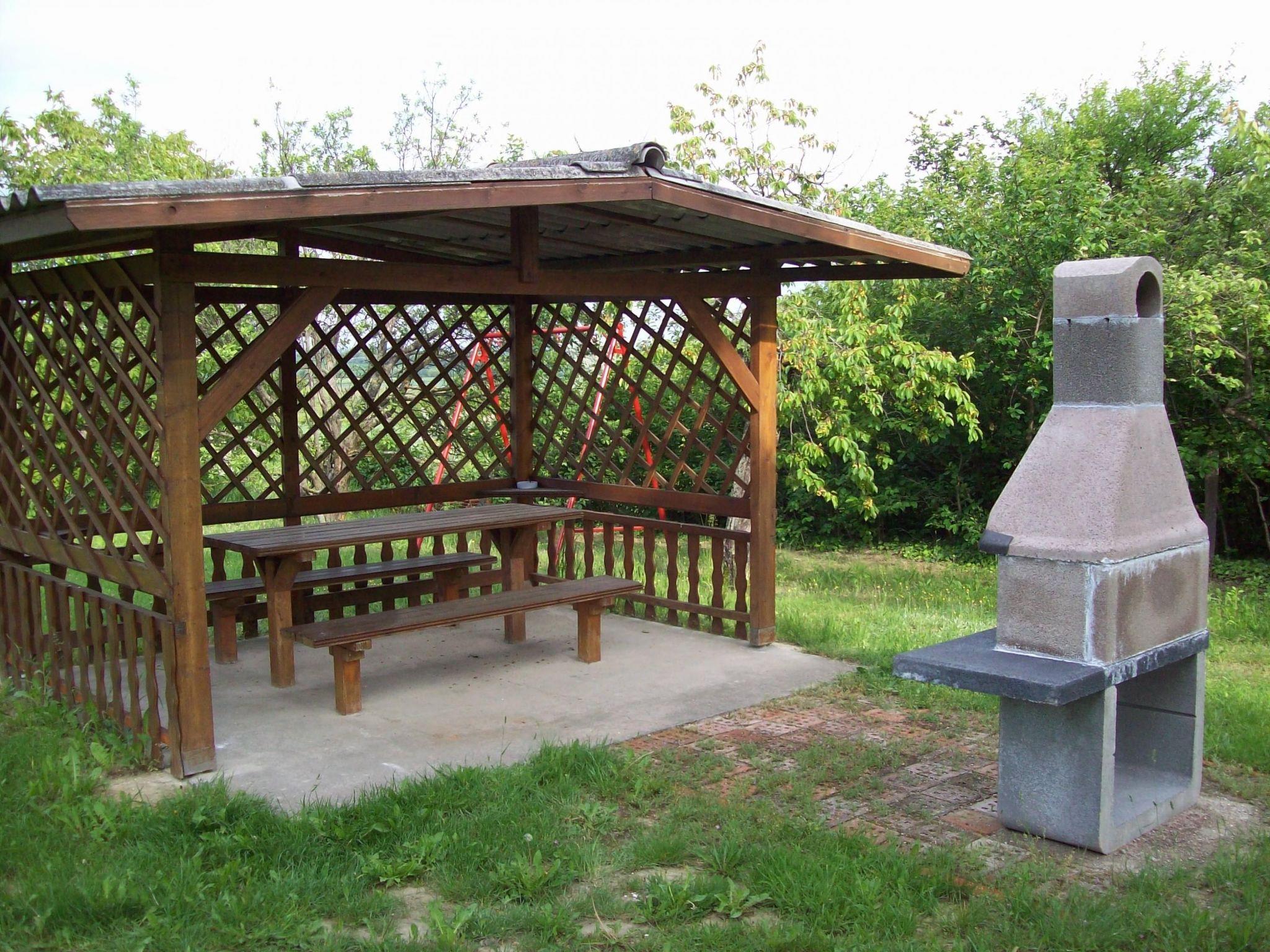 You can use a terrace, garden furniture, a garden shower, a grill and a gazebo.