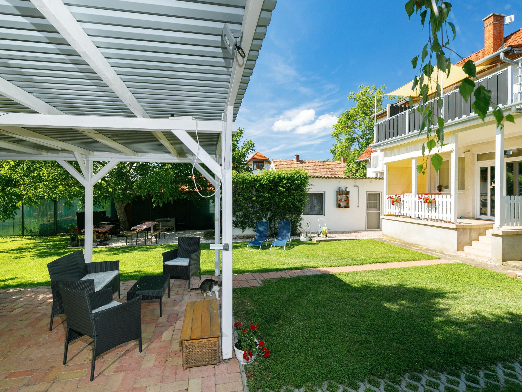 Balatonkeresztùr 20 km from Keszthely: Modern 2-family house "Meretei Porta", detached, renovated in 2022. 1.5 km from the centre of Balatonkeresztur, in a quiet, sunny position, 2 km from the lake, 2 km from the beach. For shared use: garden 500 m2 (fenced), meadow. Garden furniture. In the house: air conditioning, washing machine. Parking (for 2 cars) on the premises. Shop 700 m, restaurant 800 m, grass beach 1.5 km, thermal baths "Hévíz" 25 km, lake Lake Balaton 1.5 km. Tennis 8 km, riding stable 28 km, children's playground 1 km. Nearby attractions: Festetics Castle 20 km, Bobo Fun Park 25 km, Adventure Park Zamárdi 63 km, Festetics Zoo, game farm 26 km, Kereki Dinosaur Park 54 km, Kis-Balaton Visitor Centre 13 km. Please note: Loading and unloading of baggage is possible at the holiday house.