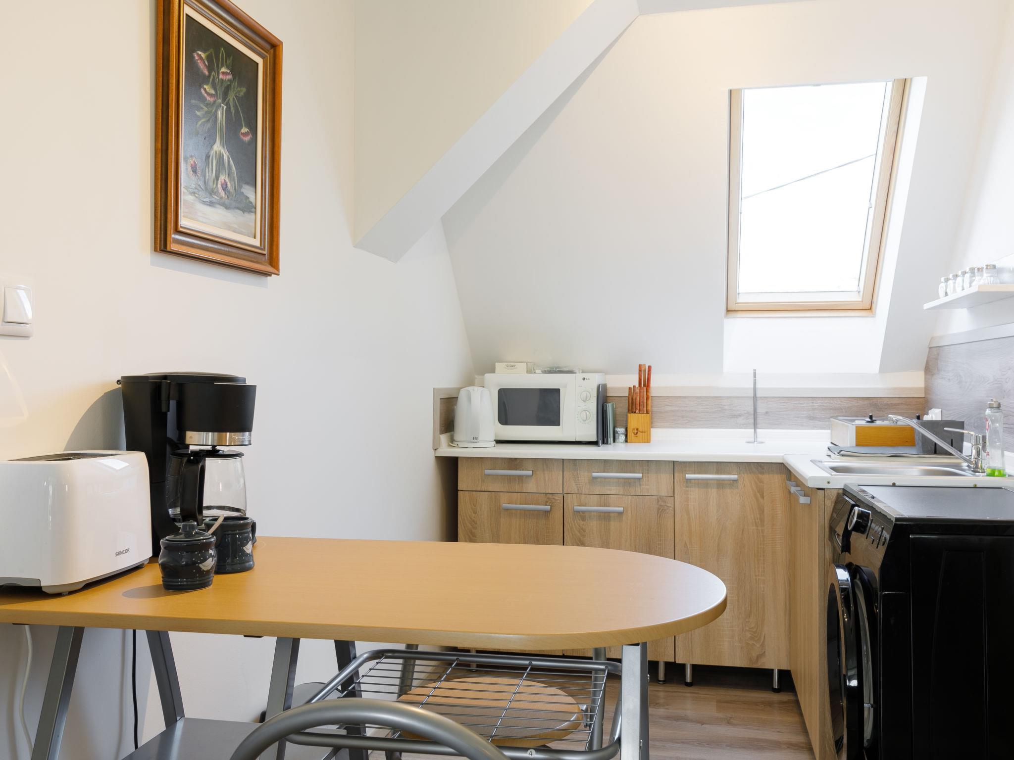4-room apartment 55 m2, on the upper floor. Object suitable for 4 adults. Bright, renovated in 2022, very modern and stylish furnishings: entrance hall. Open living/dining room with satellite TV and flat screen. Exit to the balcony. 2 double bedrooms, each room with 2 beds. Small kitchen (2 hot plates, toaster, kettle, microwave, electric coffee machine) with dining table. Bath/shower/WC. Heating, air-conditioning. Large balcony. Balcony furniture, barbecue. Very beautiful view of the garden and the countryside. Facilities: Internet (WiFi, free). The owner lives in the same house on the ground floor, with a separate entrance. MA22050166