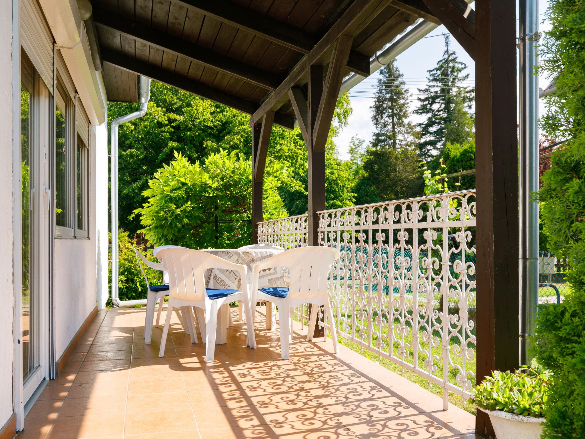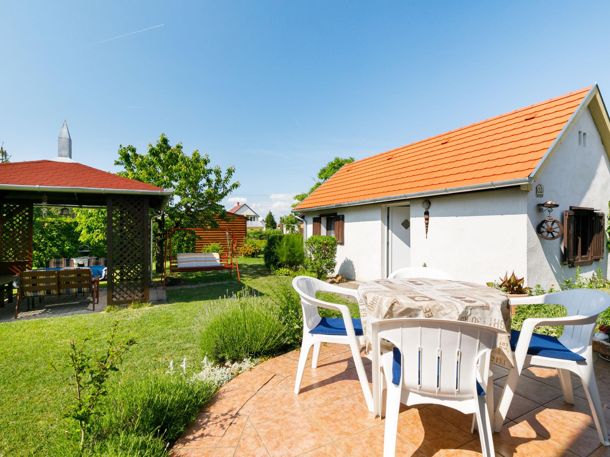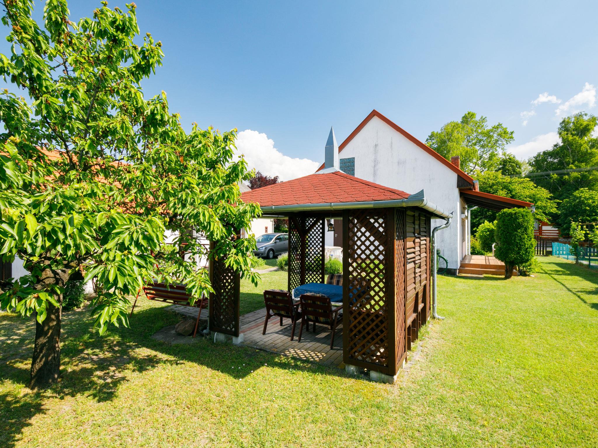 Balatonkeresztur 19 km from Keszthely: Cosy house "Pergola", renovated in 2008. In the resort, in a sunny position, 500 m from the lake, 1 km from the beach. Private: well-kept garden 400 m2 (fenced), lawn for sunbathing. Grocery, restaurant, outdoor swimming pool 500 m.