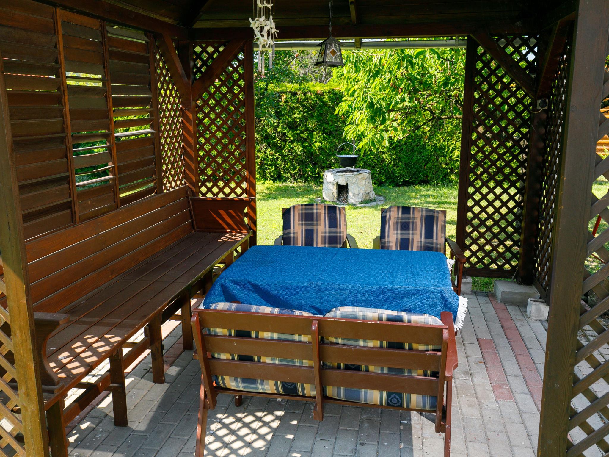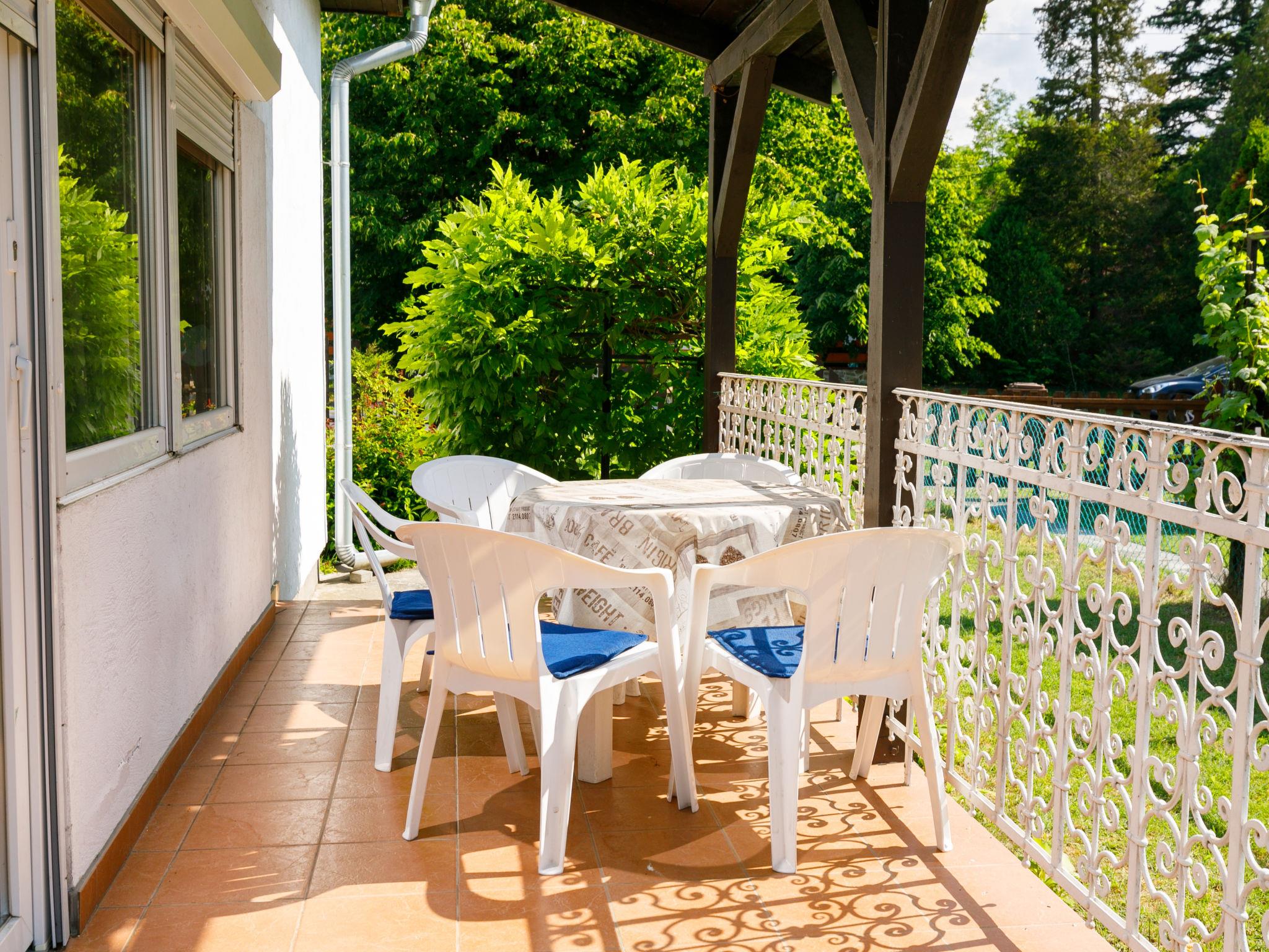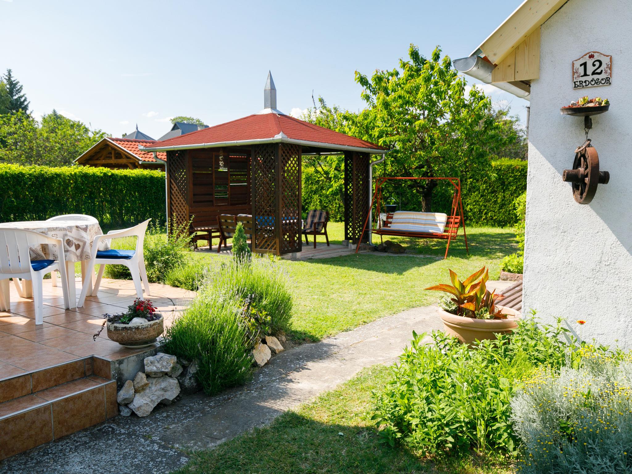 Balatonkeresztur 19 km from Keszthely: Cosy house "Pergola", renovated in 2008. In the resort, in a sunny position, 500 m from the lake, 1 km from the beach. Private: well-kept garden 400 m2 (fenced), lawn for sunbathing. Grocery, restaurant, outdoor swimming pool 500 m.