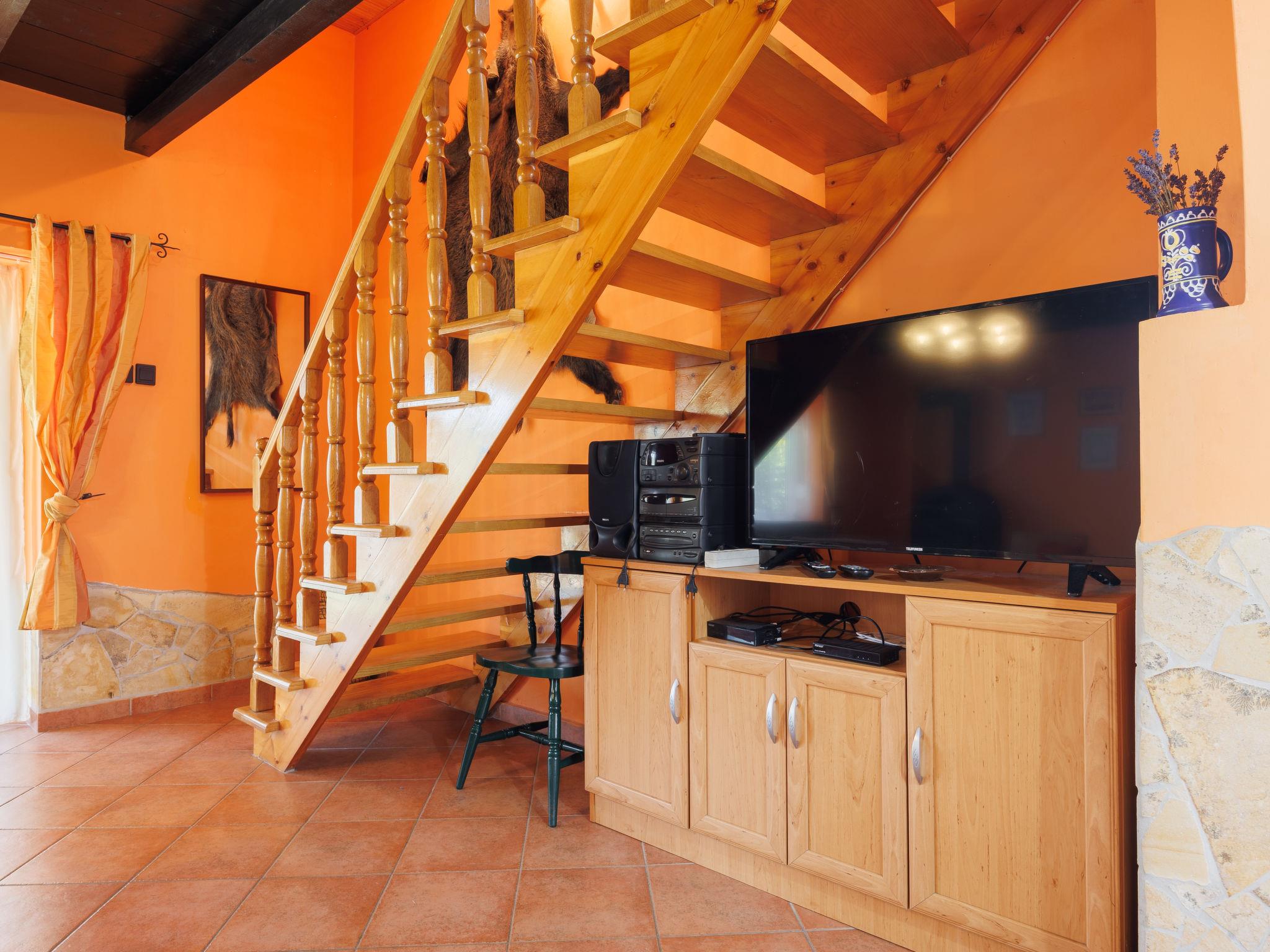 5-room house 90 m2. Comfortable furnishings: living room with Scandinavian wood stove, satellite TV and radio. Exit to the terrace. 1 room with 2 beds. Open kitchen (4 hot plates, oven, microwave, freezer). Shower, sep. WC. No heating option. Upper floor: 1 room with 2 beds. 2 rooms, each room with 1 french bed. Exit to the balcony. Sep. WC. 2 small balconies, terrace 10 m2, terrace 6 m2, patio. Terrace furniture, barbecue, deck chairs (2). Facilities: baby cot. Parking (3 cars). Maximum 1 pet/ dog allowed. MA21003825