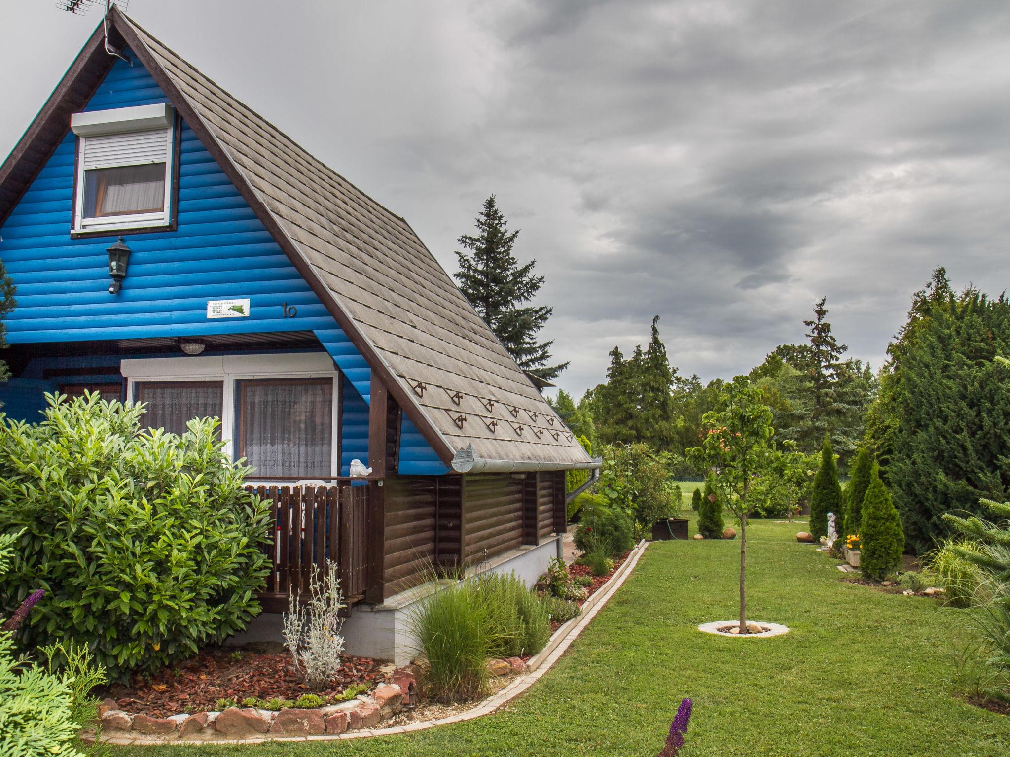 Balatonkeresztúr: Small, cosy single-family house "Blue". In the resort, in a quiet position, 800 m from the lake. Private: well-kept garden 450 m2 (fenced) with lawn and trees. In the house: air conditioning (extra). Grocery 200 m, restaurant 150 m, grass beach 800 m. Please note: the owner lives on the same property.