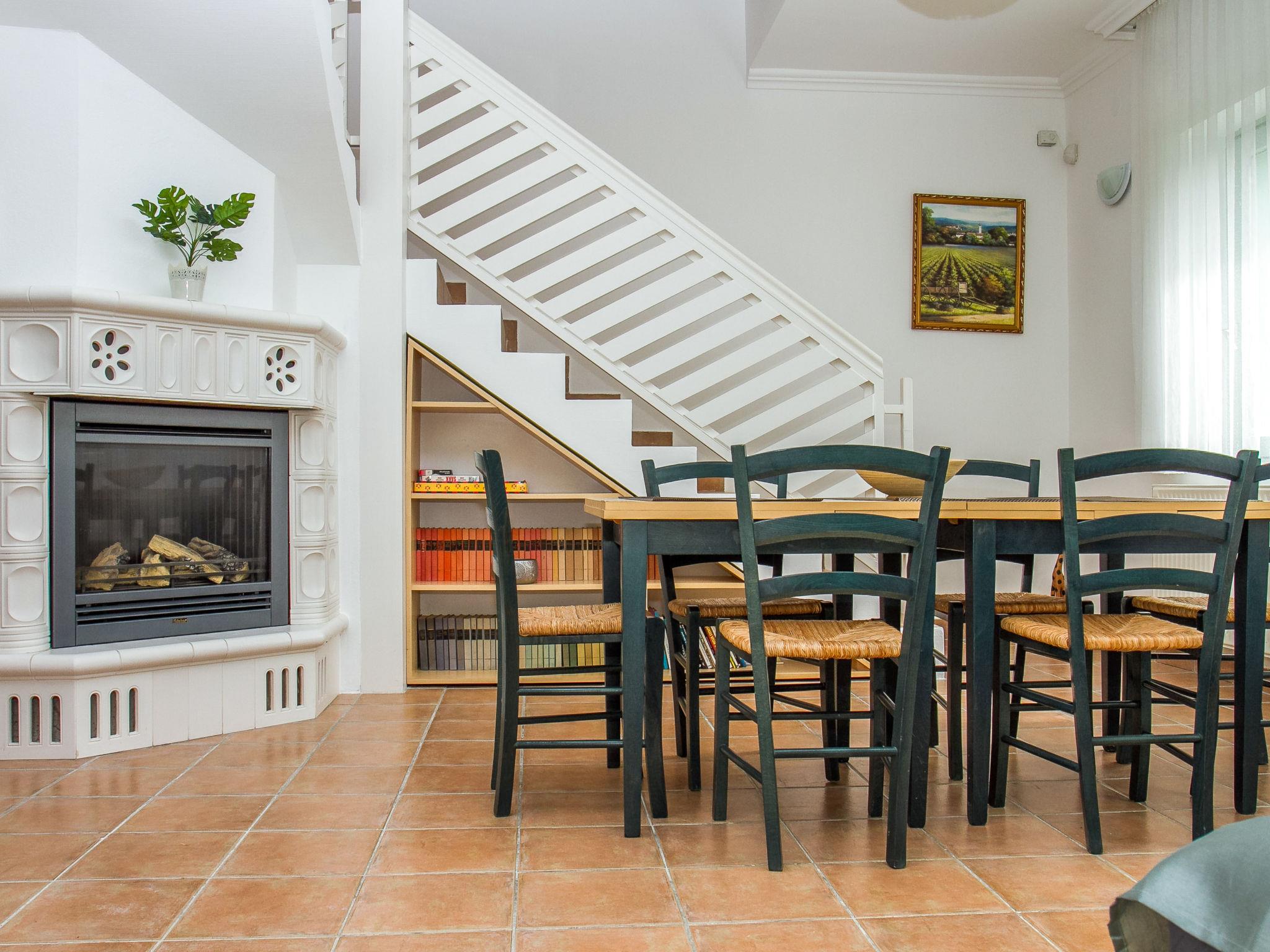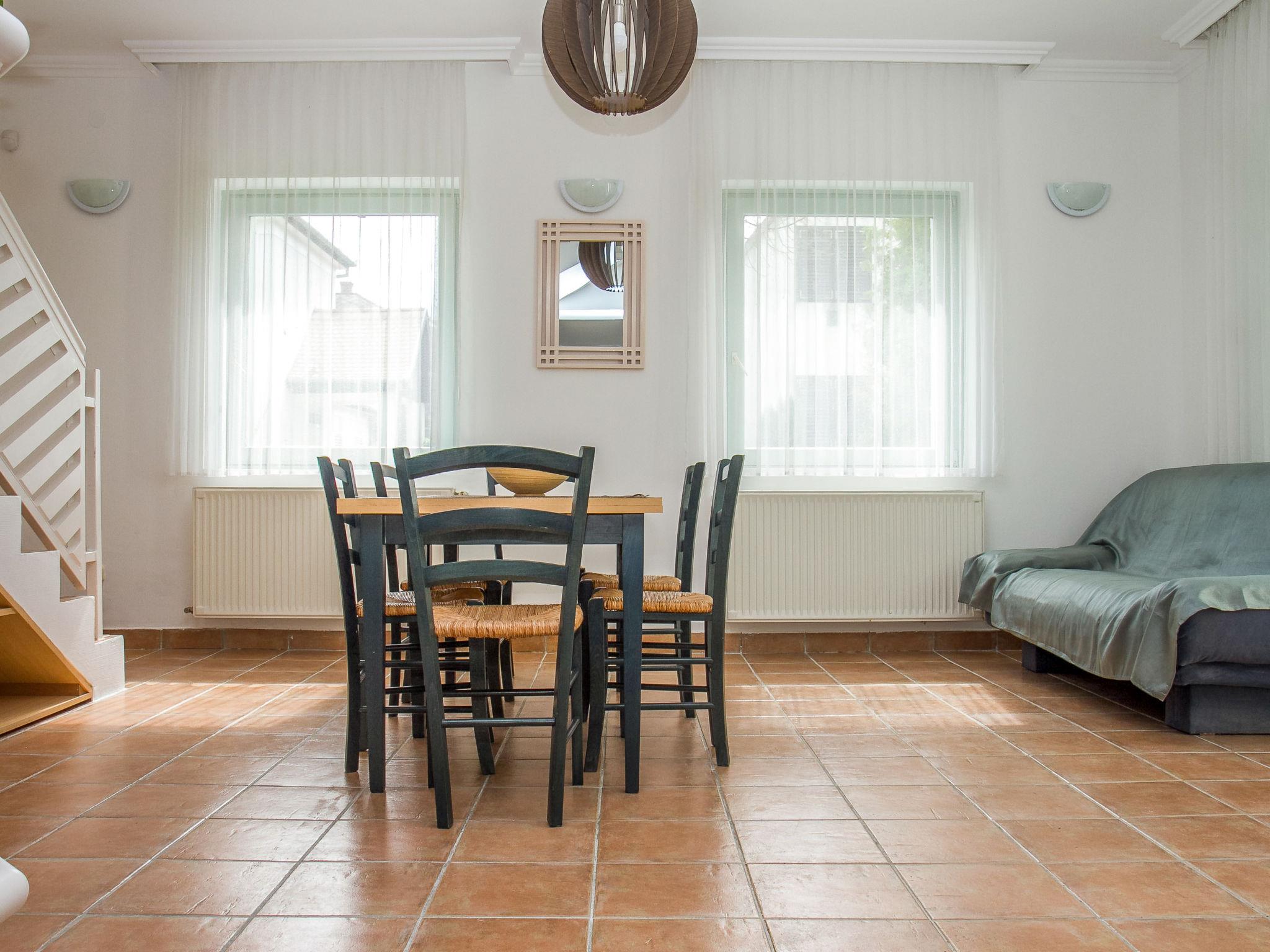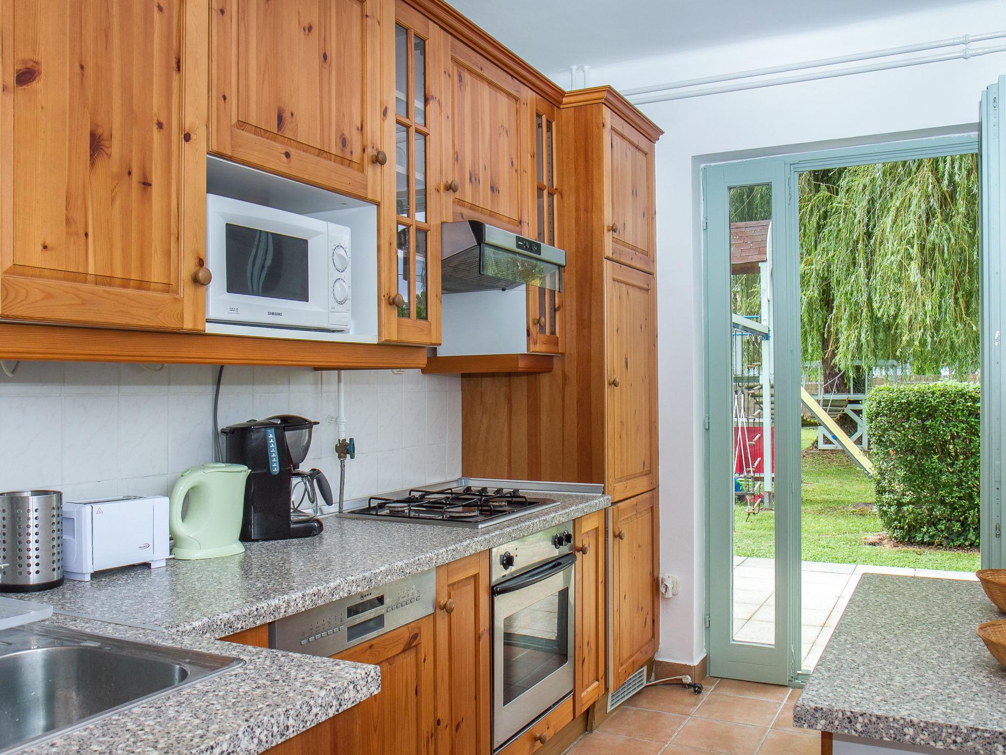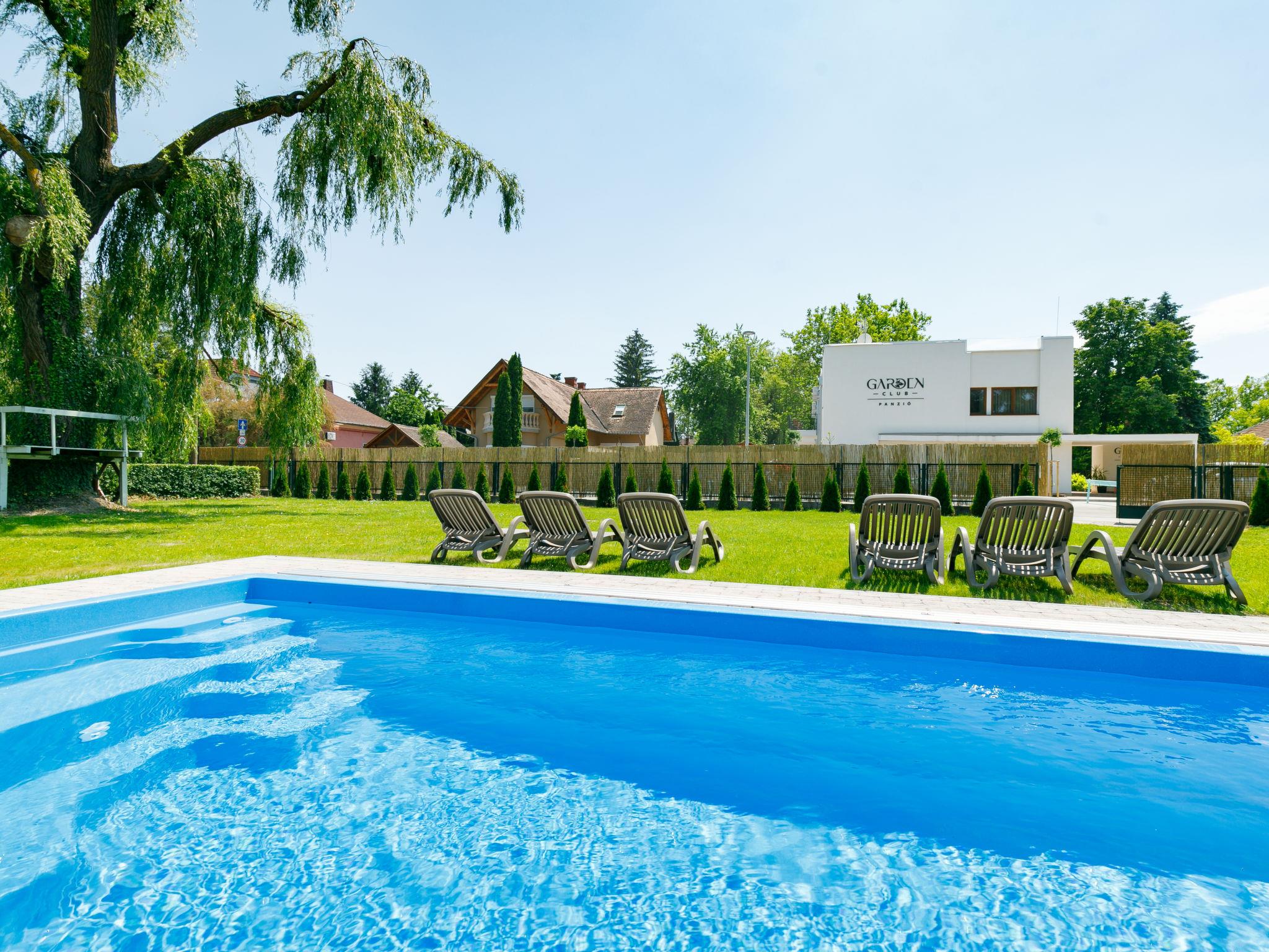 Balatonmáriafürdo 18 km from Keszthely: Child friendly, beautiful 2-family house "Sapphire", 2 storeys. In the resort, 100 m from the centre, 250 m from the lake, 200 m from the beach. Private: property 1'200 m2 (fenced), garden with lawn and flowers, swimming pool angular (6 x 4 m, depth 140 cm, seasonal availability: 15.May. - 15.Sep.). Children's playground. In the house: WiFi (all included), air conditioning (extra). Grocery 200 m, supermarket 9 km, restaurant 80 m, bakery, café, railway station 300 m, grass beach 150 m, thermal baths "Csiszta" 15 km. Surf school 7 km, sailing school 1 km, tennis 400 m, riding stable 4 km, cycle lane 50 m, children's playground 350 m, fishing possibilities 150 m. Nearby attractions: Héviz Thermal Bath 20 km, Festetics Palace 19 km, Rubin Winery 1.5 km, Airport 1.8 km, Hamvas Béla viewpoint 3 km. Please note: baby equipment on request.