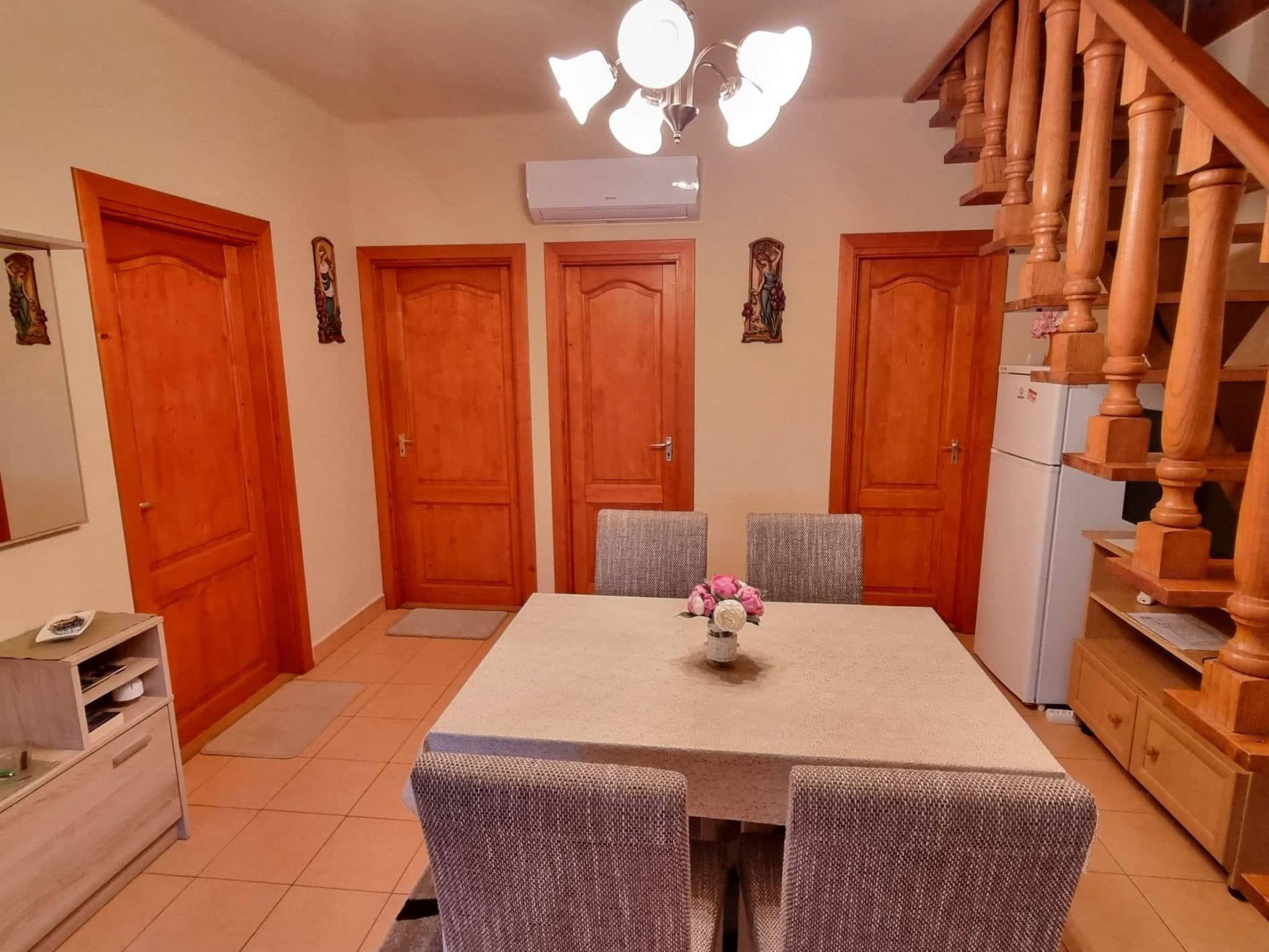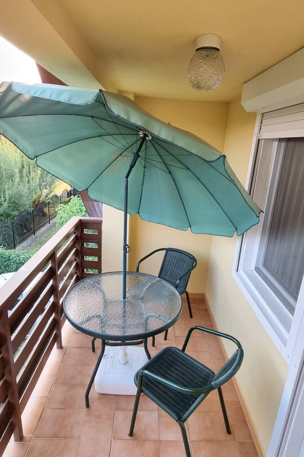 Number of persons: max. 6Living area: 90 m². Distances: Balaton 250 m, beach 300 m, shopping 300 m, restaurant 300 m, centre 500 m.Ground floor: living room with dining area and with SAT-TV. 2 double bedrooms. Well equipped kitchen. Bathroom with shower and WC.Upstairs: 1 double bedroom. Bathroom with shower and WC.Equipment: gas cooker, coffee machine, fridge, microwave, toaster. Terrace and balcony with garden furniture, sun beds. Barbecue facilities. With own sun terrace. Included: Final cleaning, bed linen, use of water, gas and electricity.