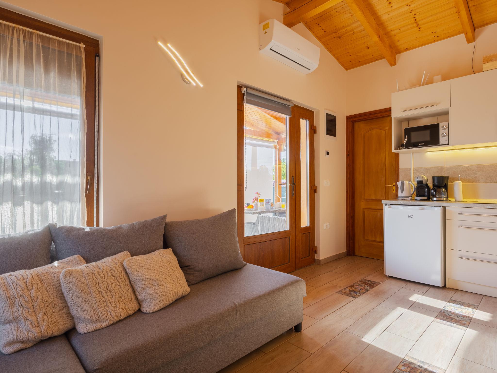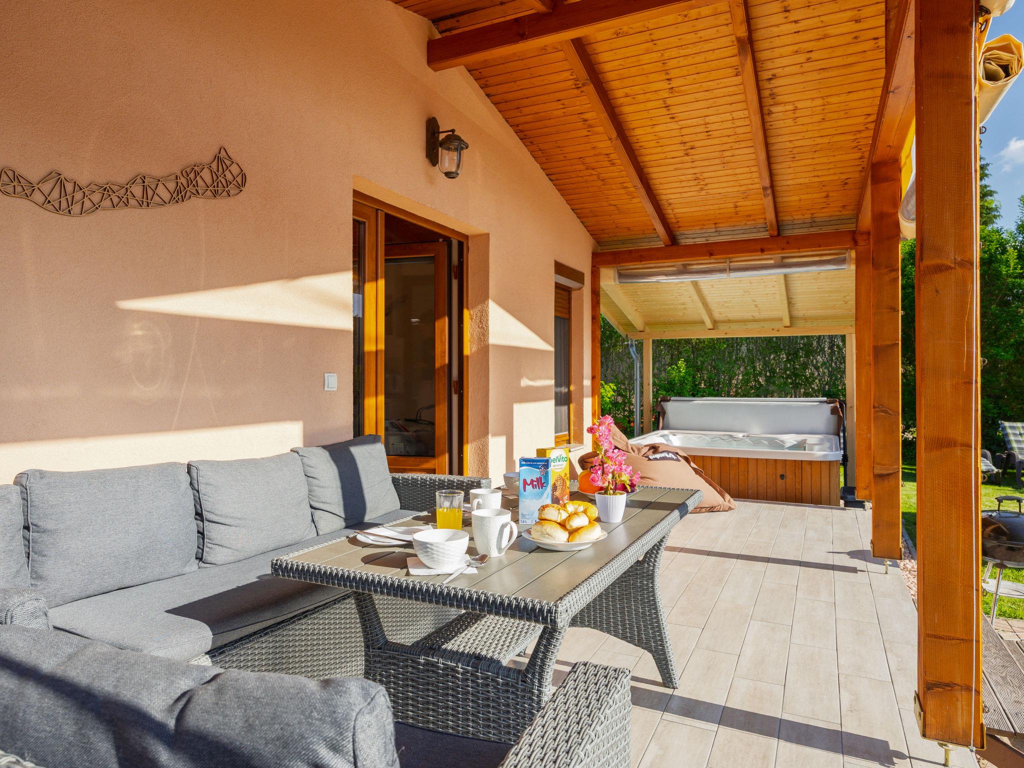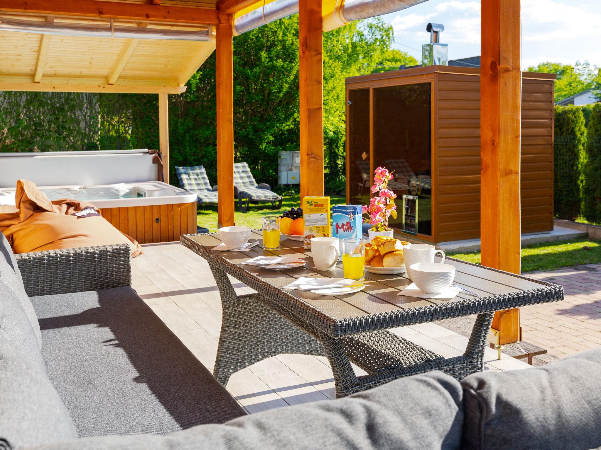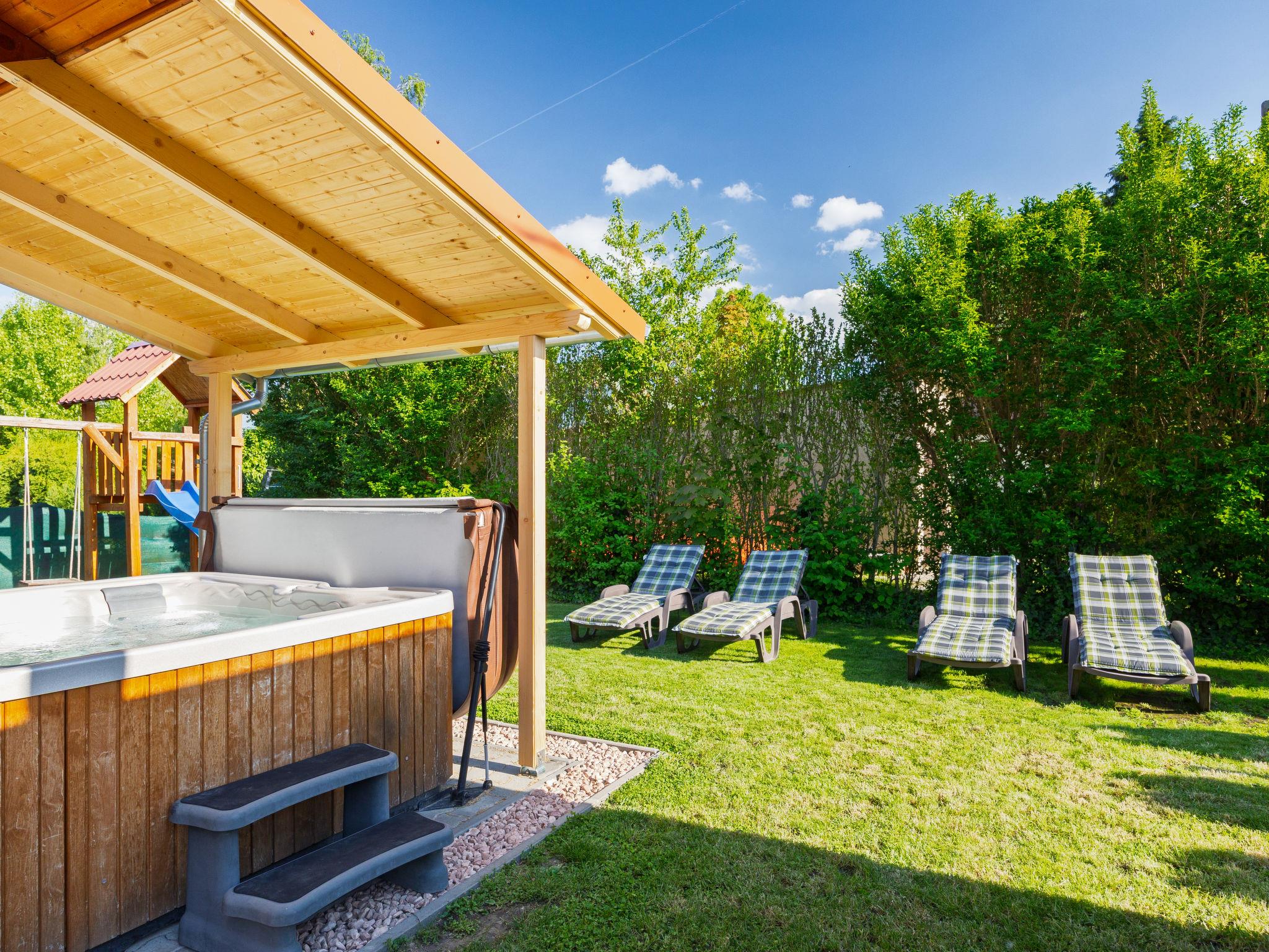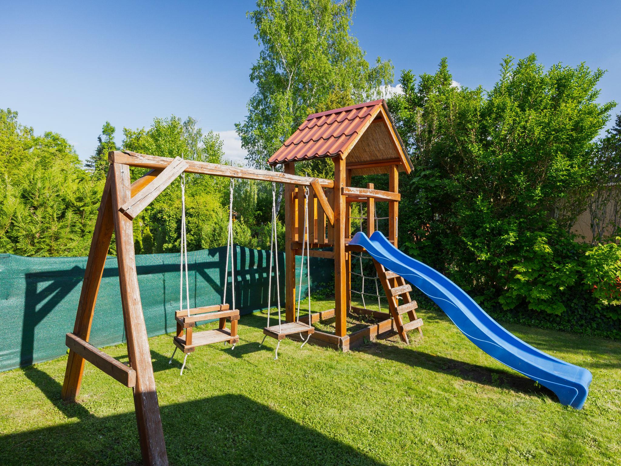 Balatonmáriafürdo 20 km from Balatonboglár: Small, cosy house "Hullám". In a quiet, sunny position, 350 m from the lake, 700 m from the beach, south-west facing position. Private: property (fenced), lawn for sunbathing. Hot tub, children's playground (slide, swing). In the house: WiFi, central heating system, air conditioning. Parking (for 2 cars) on the premises. Grocery 1.5 km, supermarket 4 km, restaurant 550 m, bicycle rental 4 km, railway station 500 m, grass beach 700 m, thermal baths "Hévíz" 29 km. Tennis 4 km, cycle lane 50 m, children's playground 700 m. Nearby attractions: Balatonlelle Giant Wheel 28 km, Kis-Balaton Visitor Center 18 km, Kereki Dino Park 49 km, Festetics Castle 24 km, Kristinus Wine Estate 12 km, Bobo Fun Park 29 km. Please note: railway line closeby 80 m from the property.