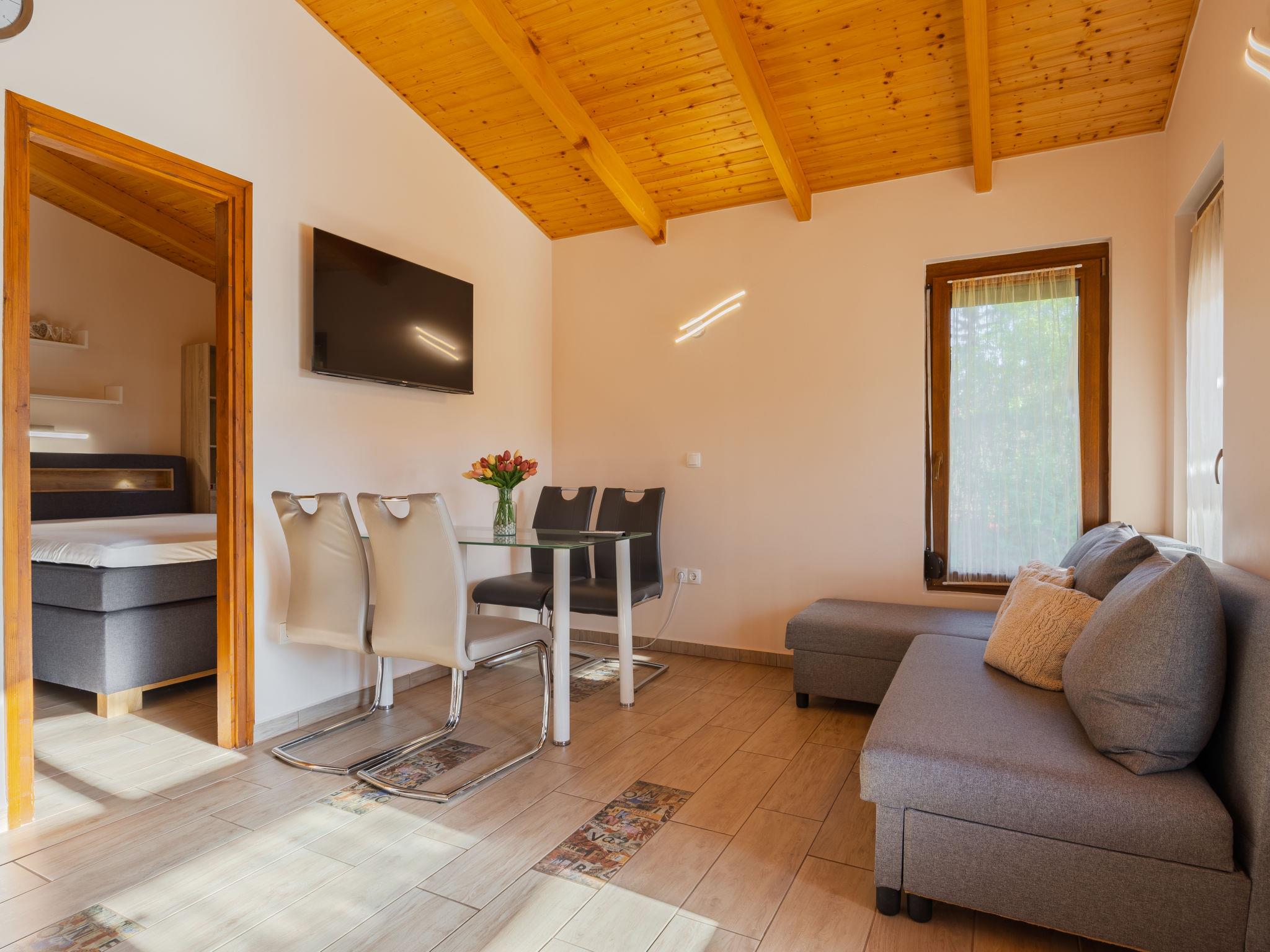 3-room house. Comfortable furnishings: living/dining room with dining table, kitchen corner, digital TV and air conditioning. Exit to the terrace. 1 double bedroom with 1 french bed (160 cm, length 200 cm). 1 room with 2 beds (80 cm, length 200 cm). Open kitchen (dishwasher, 2 induction hot plates, kettle, microwave, electric coffee machine). Shower/WC. Heating. Terrace, west facing position. Terrace furniture, barbecue (portable), deck chairs (4). Facilities: washing machine, sauna, mosquito net. Internet (WiFi). MA20009346